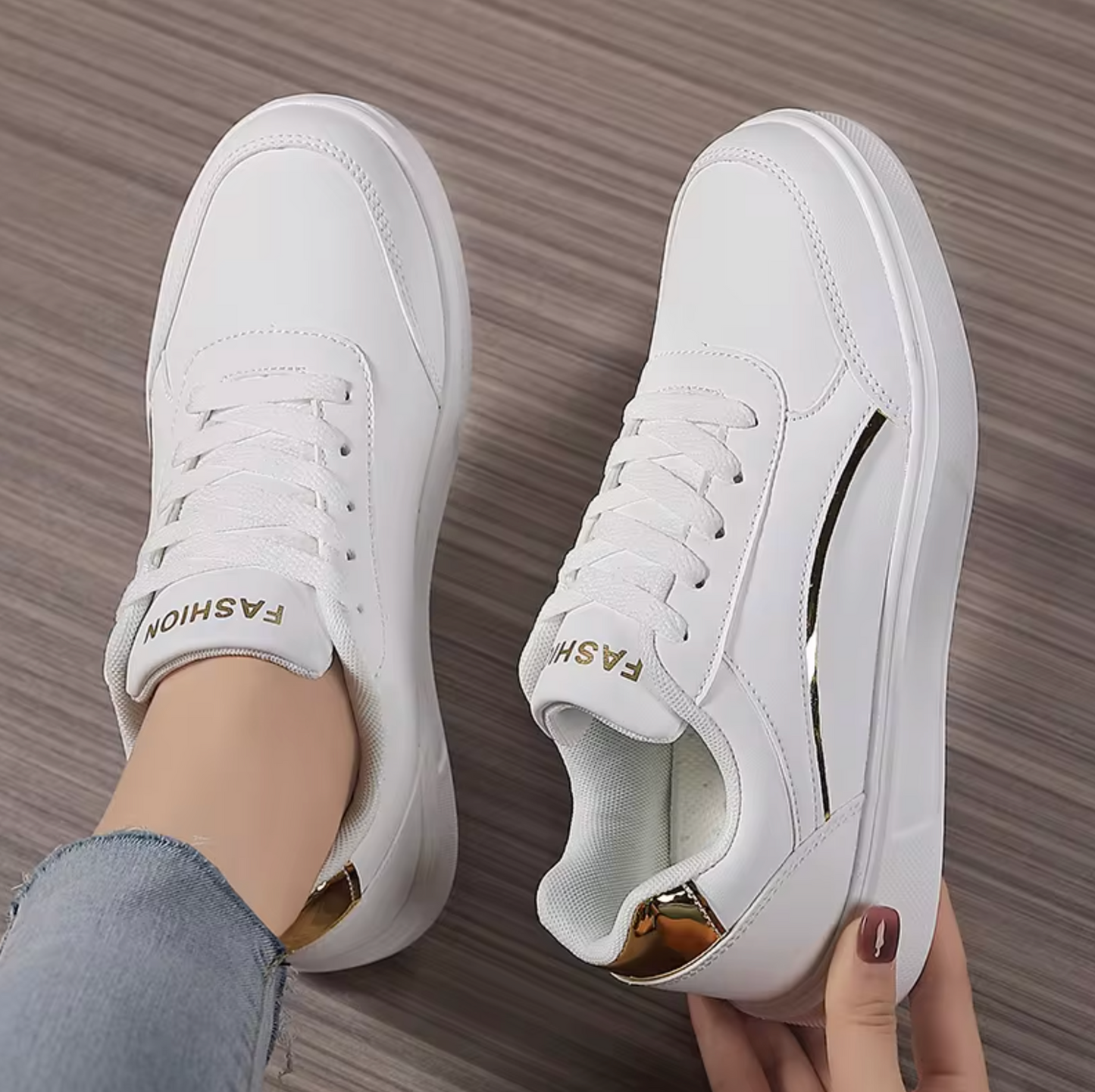 Estas zapatillas de tenis no son sólo estilo, sino también rendimiento: la duradera suela exterior proporciona una excelente tracción, mientras que los materiales transpirables mantienen tus pies frescos y cómodos durante todo el día. Su diseño versátil combina bien con vaqueros, leggings o incluso vestidos informales, lo que convierte a estas zapatillas en un imprescindible de tu armario. Entra en un mundo de comodidad y glamour con estas zapatillas brillantes que combinan a la perfección funcionalidad con un toque de glamour .