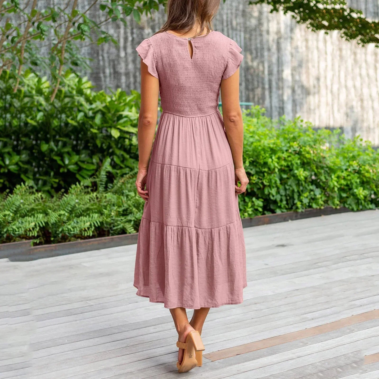 Disfruta del calor de la temporada con el elegante vestido July. Esta prenda atemporal combina comodidad y estilo sin esfuerzo, por lo que es imprescindible en cualquier armario de verano. Diseñado con una favorecedora silueta escalonada y confeccionado en una suave mezcla de algodón, este vestido te garantiza estar fresca y elegante en cualquier ocasión. La modelo lleva la talla M.