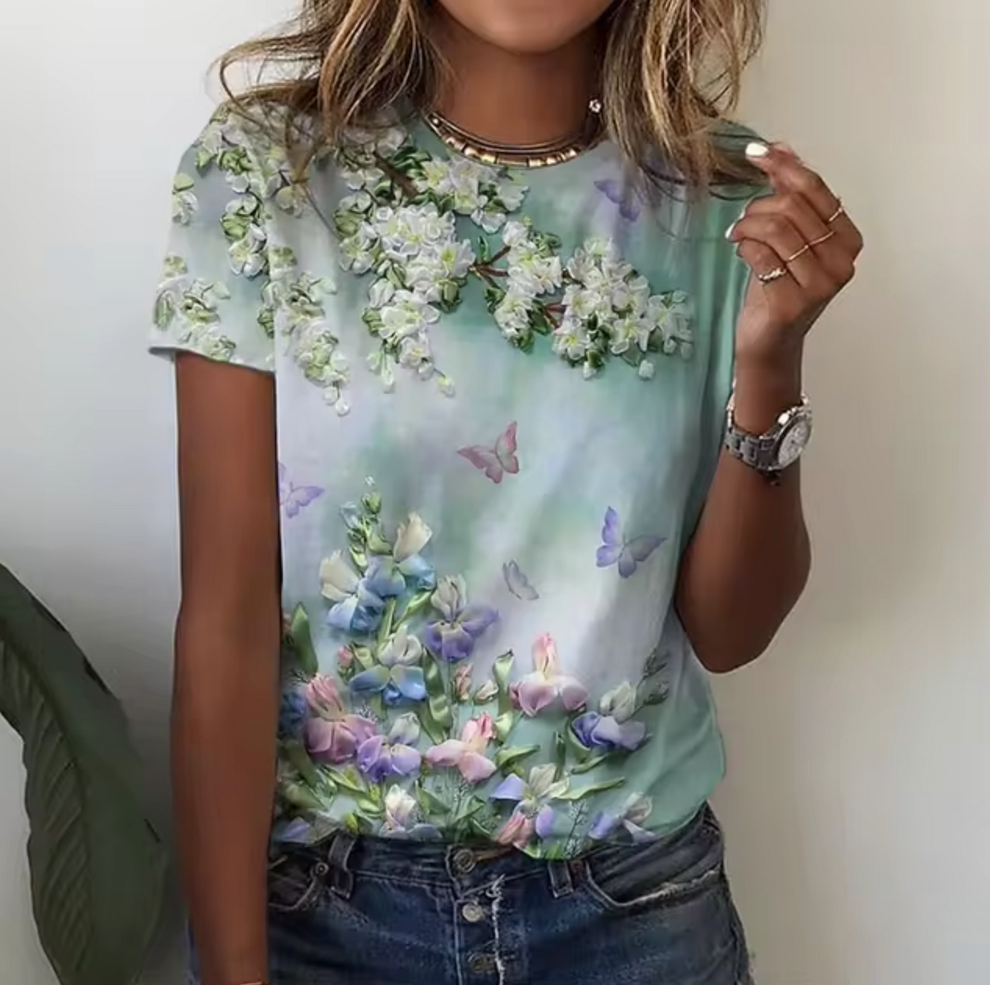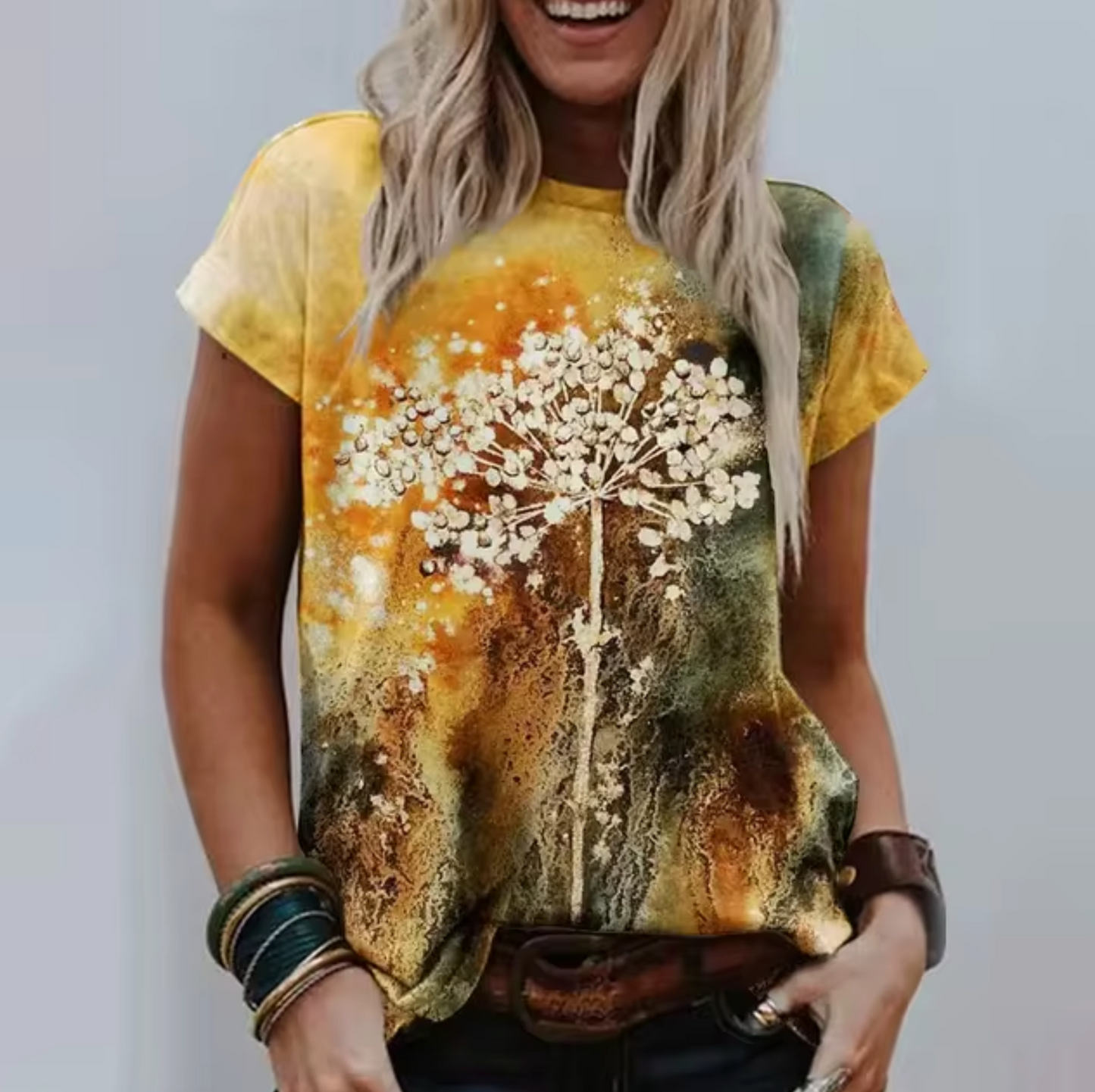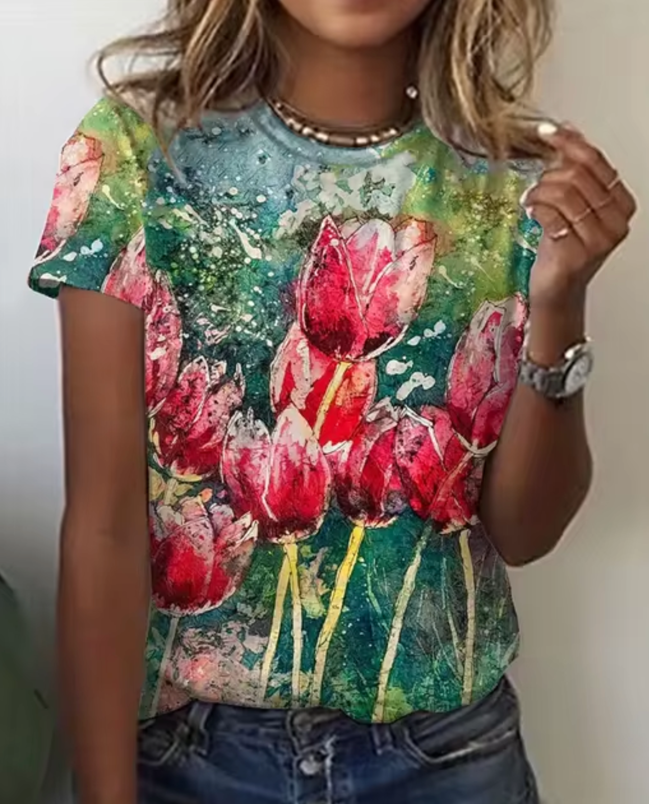 Estas elegantes camisetas para mujer presentan una hermosa combinación de diseños inspirados en la naturaleza y colores brillantes. Cada camisa tiene patrones únicos que se adaptan a tu estilo.
