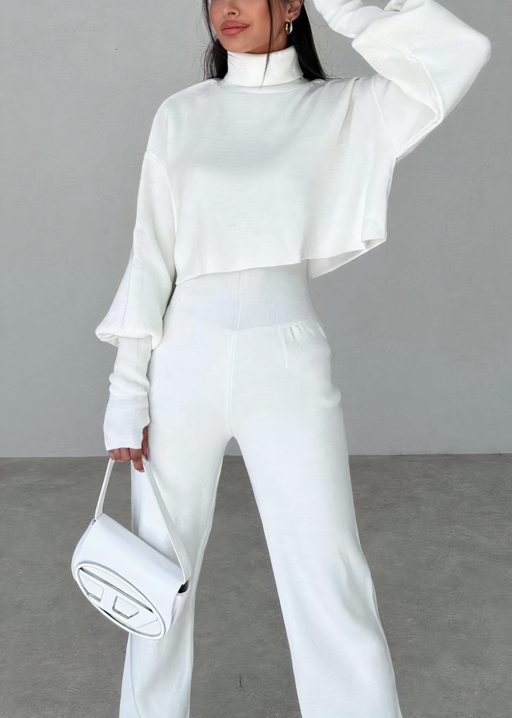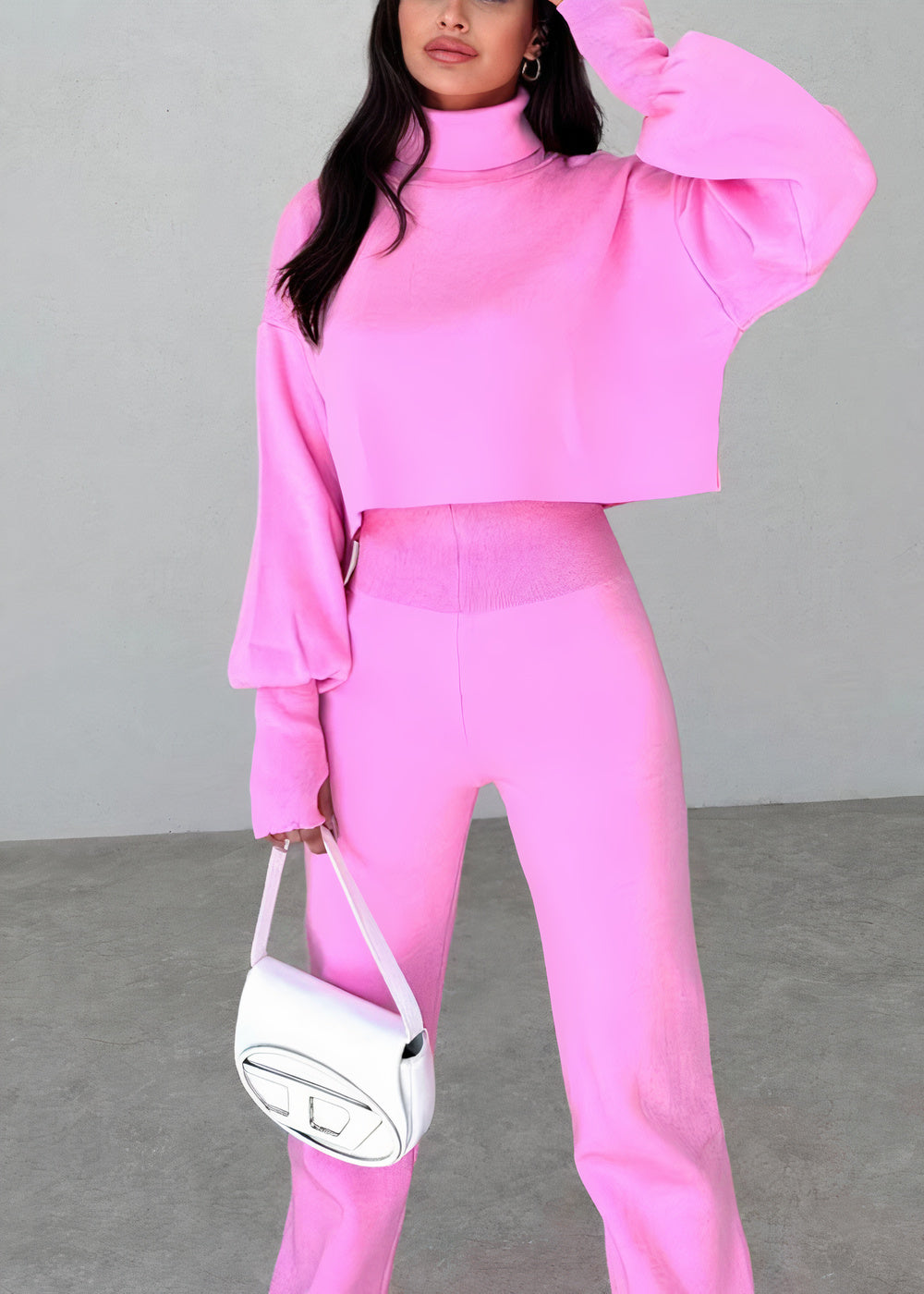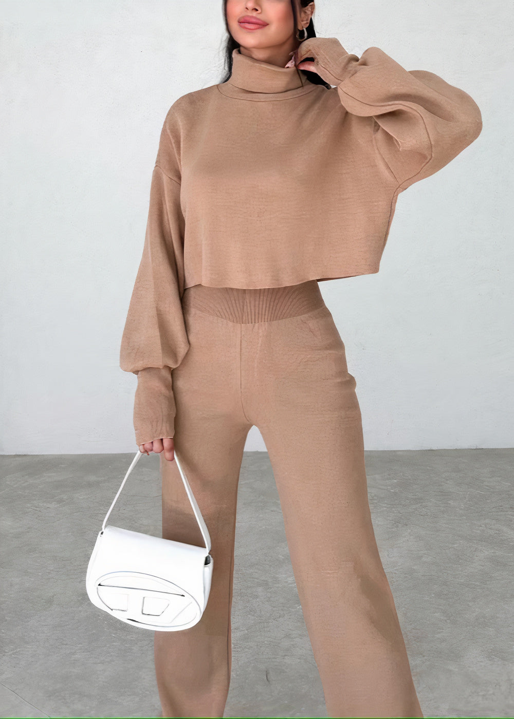 Vallory - Elegante conjunto de jersey corto de cuello alto y pantalón recto