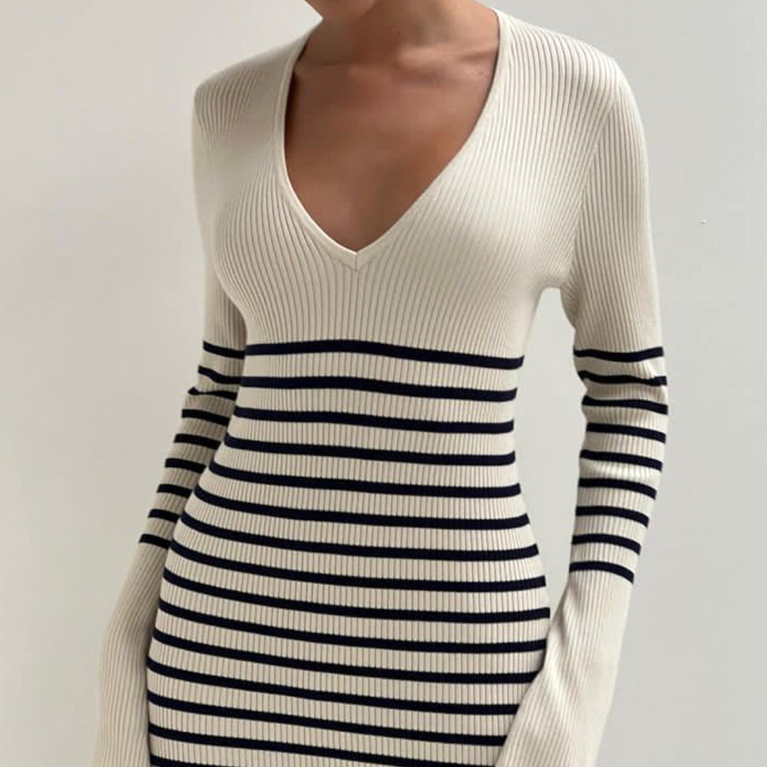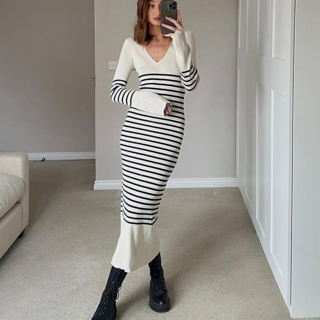Siéntete espectacular con el vestido largo de rayas Tranquility. Su diseño sinuoso y elegante con rayas ajustadas proporciona un aspecto moderno y lujoso. ¡Inspírate para disfrutar de todos los momentos especiales de tu vida a la moda!
