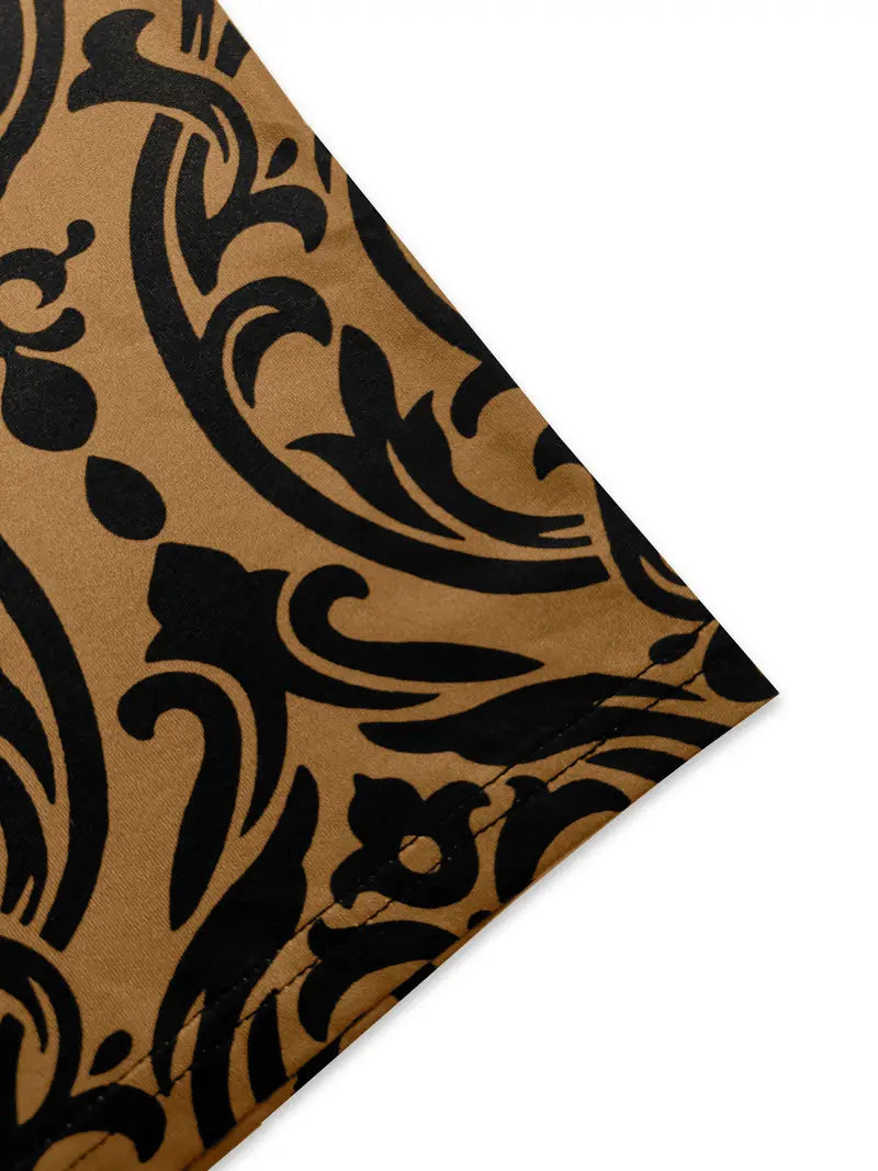 Este elegante vestido midi de un hombro está confeccionado en un tejido suave y elástico que favorece tus curvas y ofrece un ajuste favorecedor. Con su intenso color marrón de base y sus llamativos motivos barrocos en negro, irradia sofisticación y estilo y es perfecto para ocasiones formales o salidas nocturnas.